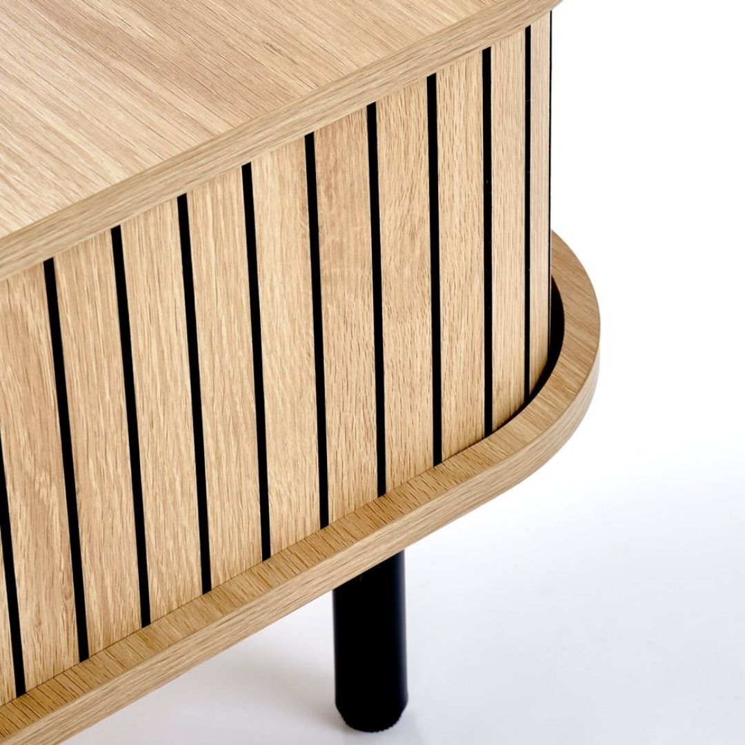 Το τραπεζάκι σαλονιού ANGELINA συνδυάζει σύγχρονο design με πρακτικότητα, αποτελώντας ιδανική επιλογή για μοντέρνους και minimal χώρους. Η επιφάνειά του από MDF με επένδυση μελαμίνης σε φυσική απόχρωση προσδίδει ζεστασιά, ενώ ο μεταλλικός σκελετός από χάλυβα με ηλεκτροστατική βαφή πούδρας σε μαύρο χρώμα εξασφαλίζει αντοχή και σταθερότητα.
