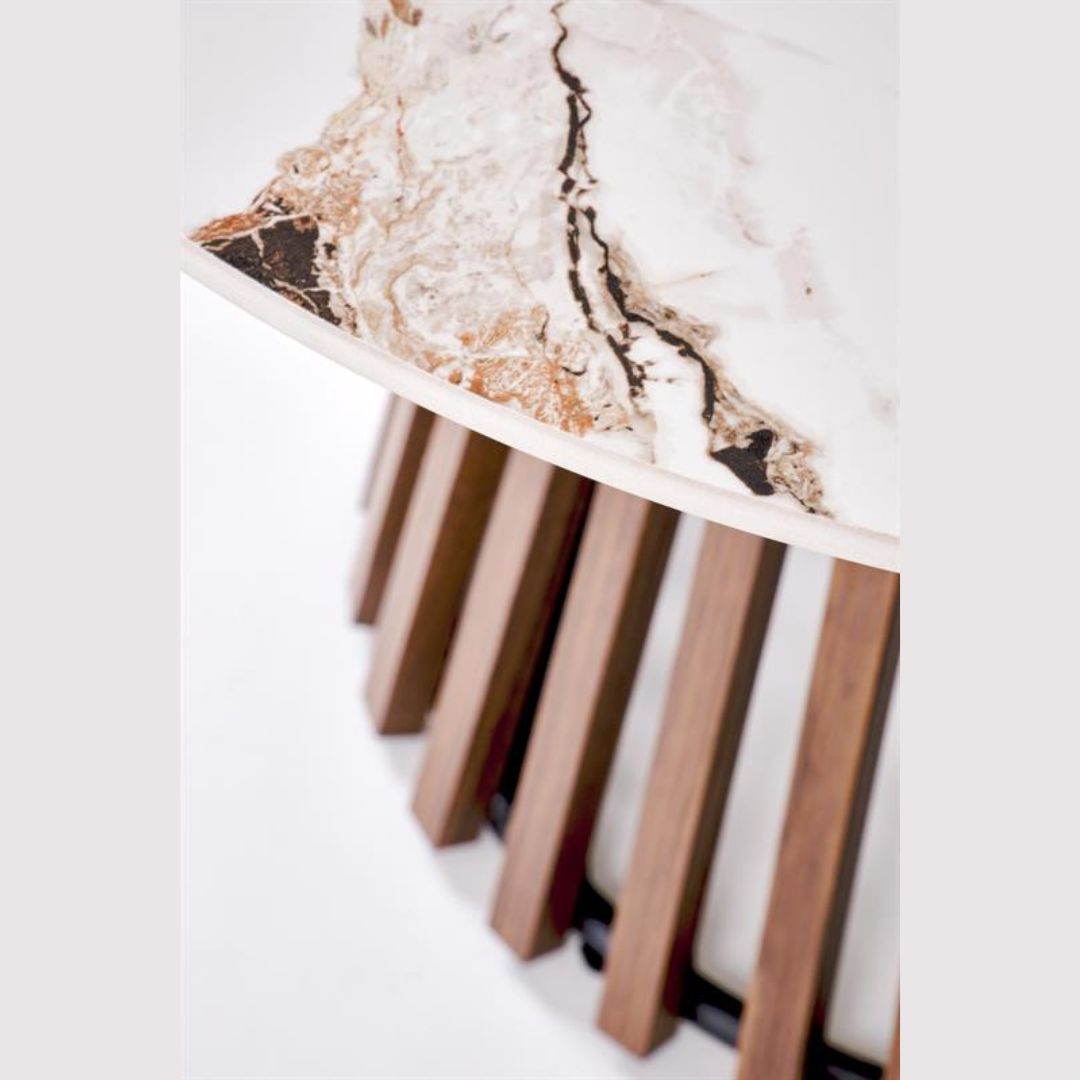 Το τραπέζι σαλονιού CARINA συνδυάζει κομψότητα και λειτουργικότητα με μοντέρνο σχεδιασμό. Η επιφάνειά του από συνθετική πέτρα σε όψη μπεζ μαρμάρου προσφέρει πολυτέλεια και ανθεκτικότητα, ενώ η βάση από MDF σε απόχρωση καρυδί χαρίζει θερμότητα και σταθερότητα. Ιδανικό για σαλόνια με σύγχρονη αισθητική, αποτελεί μια εκλεπτυσμένη επιλογή που αναδεικνύει τον χώρο σας.