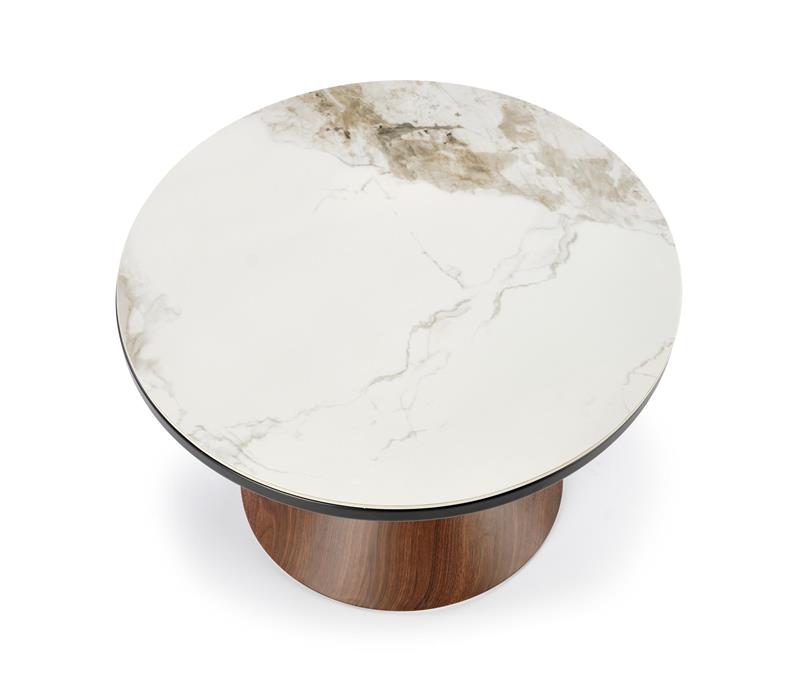 Το τραπεζάκι σαλονιού GENESIS, με λευκό μάρμαρο, καρυδιά και χρυσή λεπτομέρεια, συνδυάζουν την κομψότητα του μαρμάρου με τη ζεστασιά του ξύλου και τη λάμψη του χρυσού, δημιουργώντας ένα εκλεπτυσμένο έπιπλο που θα αναδείξει τον χώρο σας.