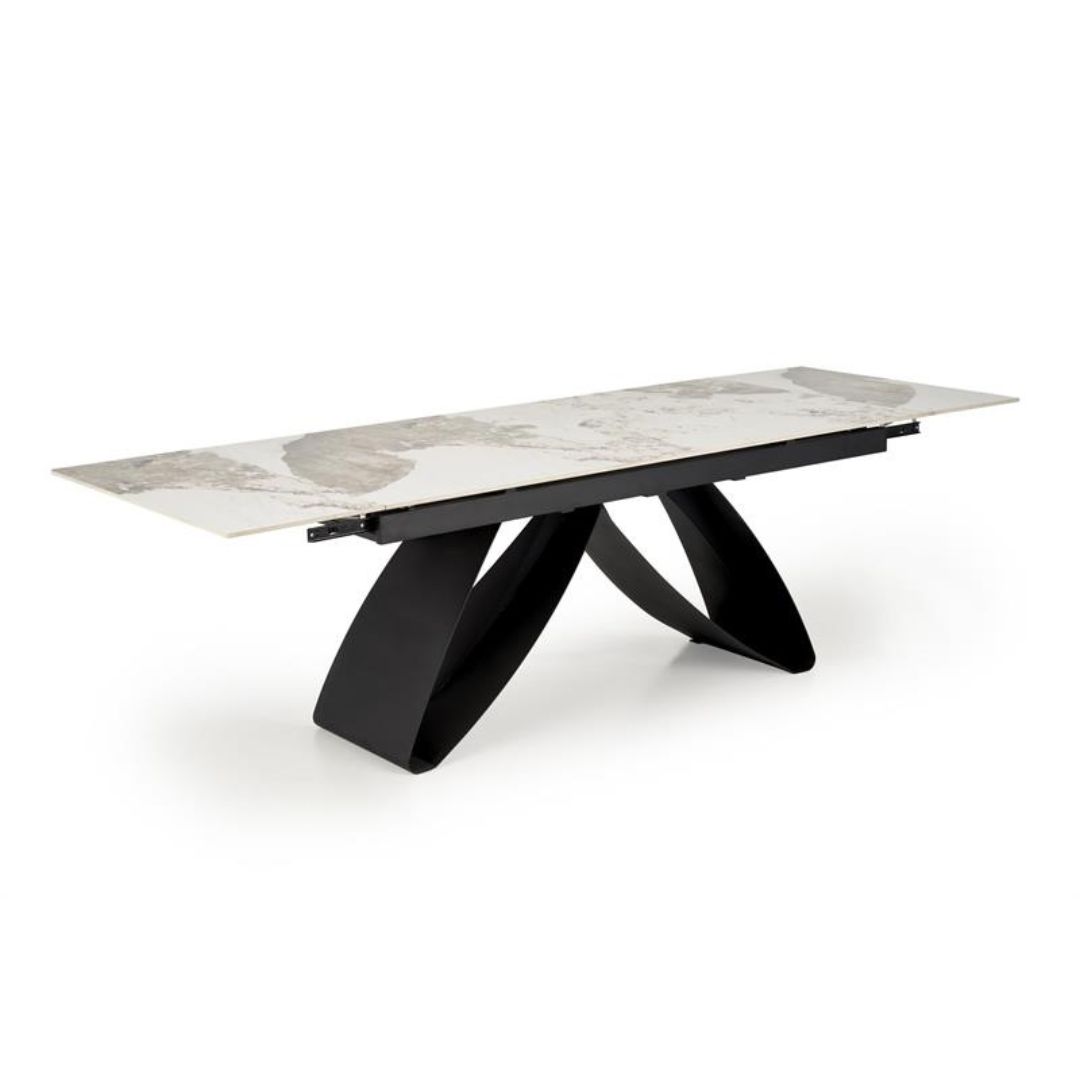 Φανταστείτε τη σοφιστικέ αισθητική που μπορεί να προσφέρει στον χώρο σας το επεκτεινόμενο τραπέζι Hilario – έναν αρμονικό συνδυασμό σύγχρονου design και διαχρονικής κομψότητας. Το μοναδικό του πόδι από ατσάλι λειτουργεί ως σχεδιαστική δήλωση, προσθέτοντας καλλιτεχνικό χαρακτήρα, ενώ η επιφάνεια από sintered stone σε απόχρωση λευκού μαρμάρου αποπνέει αίσθηση πολυτέλειας και υψηλής αισθητικής.