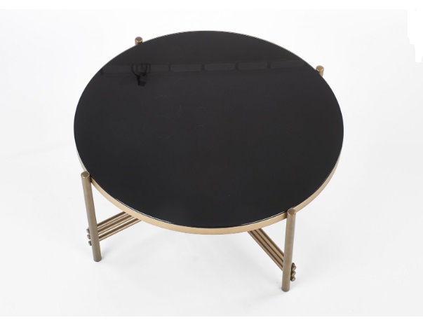 Τραπεζάκι σαλονιού περιέχει γυάλινη επιφάνεια και μεταλλικά πόδια. Είναι ένας μοντέρνος και παράλληλα απλοϊκός σχεδιασμός. Τραπεζάκι στρογγυλό και κομψό.