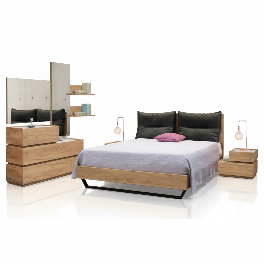Σετ κρεβατοκάμαρα με μοντέρνο σχεδιασμός .