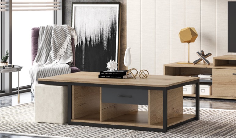 Μοντέρνο τραπεζάκι για το καθιστικό σας. Καταφέρνει να συνδυάσει αριστοτεχνικά τις αποχρώσεις του ξύλου με το μέταλλο.