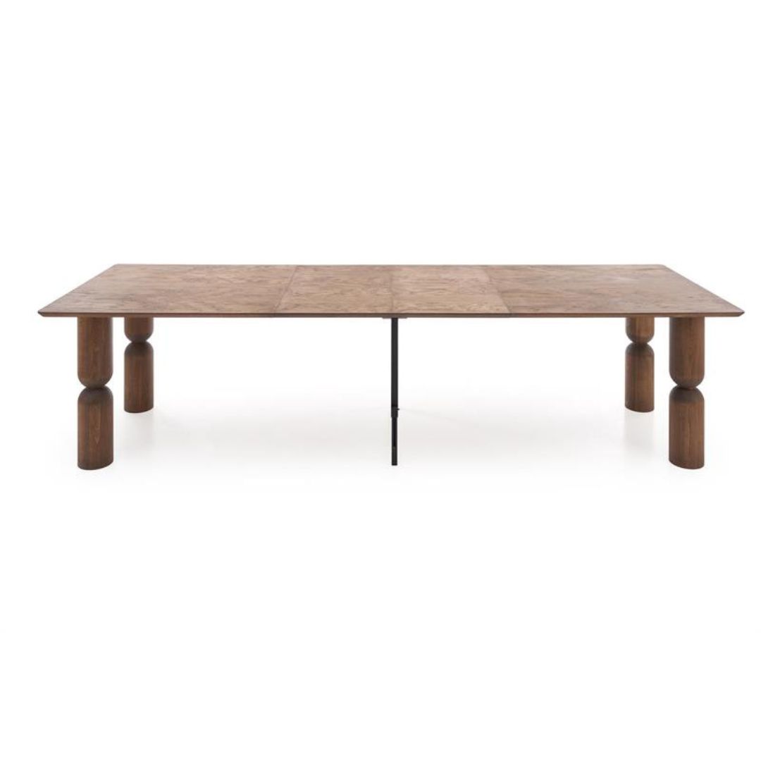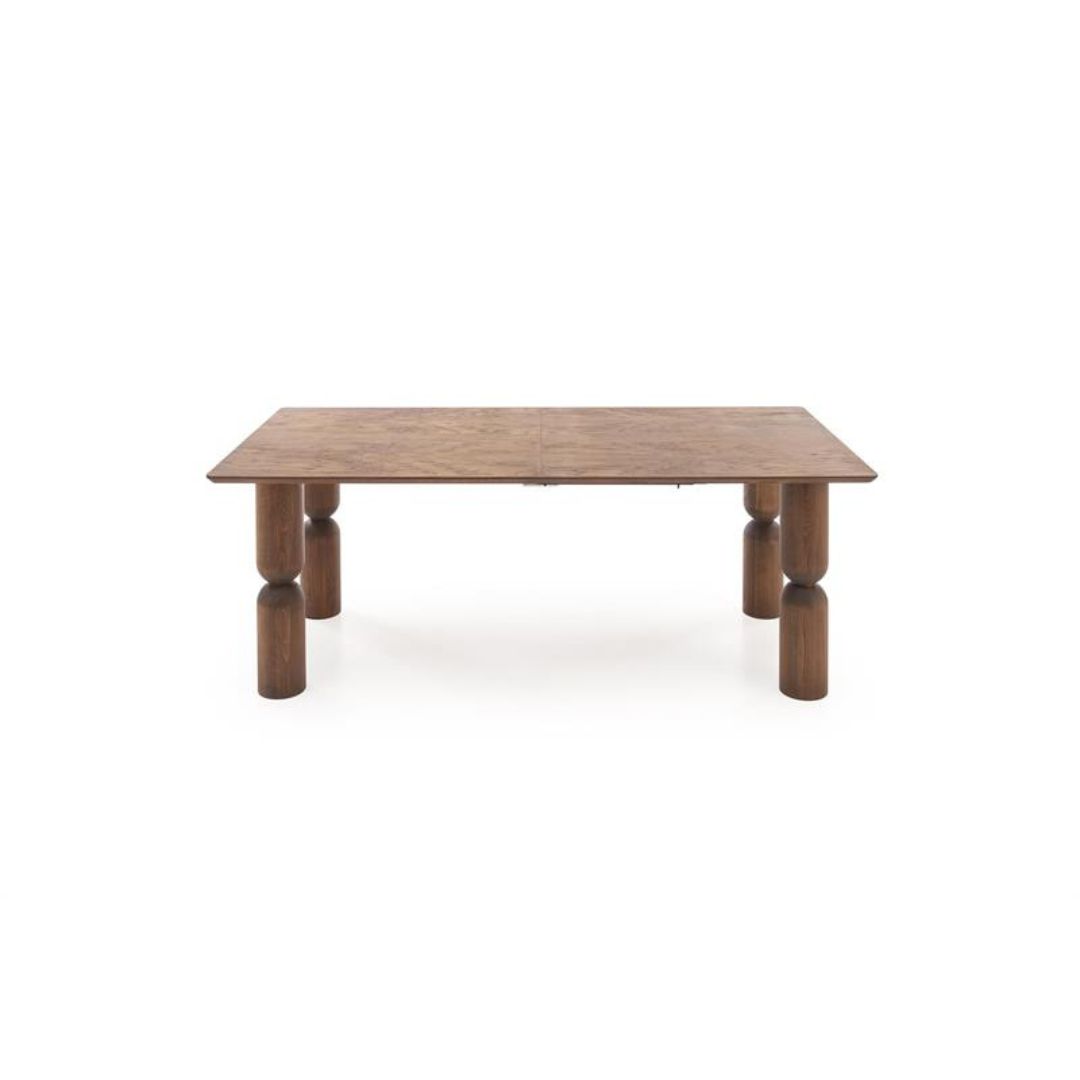 Πρόκειται για επεκτεινόμενο τραπέζι, γεγονός που το καθιστά ιδιαίτερα πρακτικό, καθώς προσαρμόζεται εύκολα ανάλογα με τις ανάγκες, αποτελώντας ιδανική λύση για μεγαλύτερες οικογενειακές συγκεντρώσεις ή δεξιώσεις. Η επιφάνειά του είναι κατασκευασμένη από MDF υψηλής ποιότητας με επένδυση φυσικού καπλαμά δρυός, εξασφαλίζοντας ανθεκτικότητα και εκλεπτυσμένη αισθητική. Τα πόδια, σε απόχρωση ανοιχτού καρυδιού, είναι από ξύλο οξιάς, προσφέροντας στιβαρότητα και άριστη σταθερότητα.