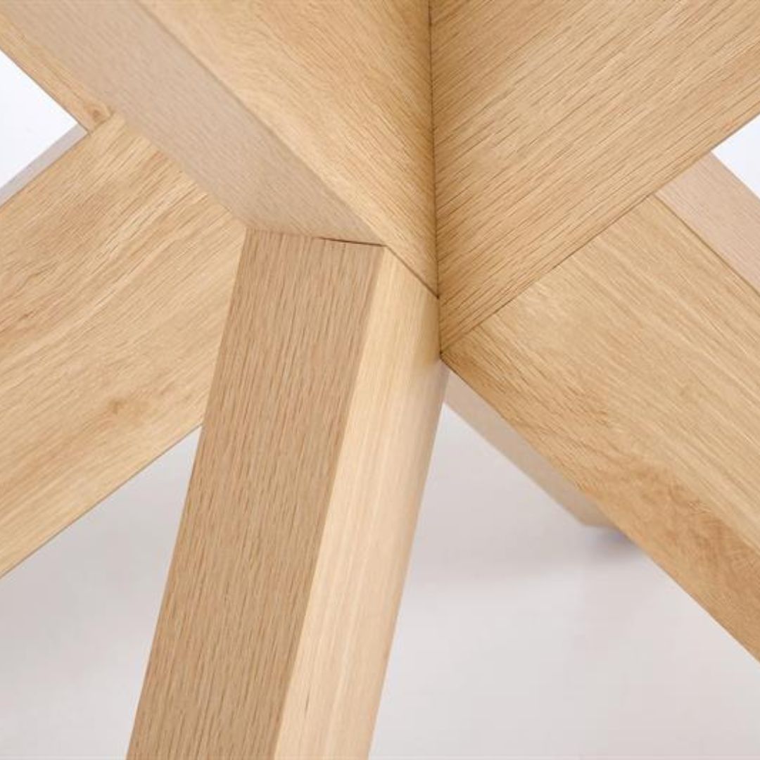 Το τραπέζι στηρίζεται σε σταθερά πόδια σε φυσικό φινίρισμα, τα οποία εναρμονίζονται άψογα με την επιφάνεια. Χάρη στις συμπαγείς διαστάσεις του, αποτελεί ιδανική επιλογή για τραπεζαρία, κουζίνα ή μικρό καθιστικό, δημιουργώντας έναν ζεστό και φιλόξενο χώρο για κοινά γεύματα και συναντήσεις.