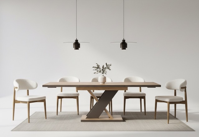 Επεκτεινόμενο τραπέζι που συνδυάζει στυλ και πρακτικότητα — ιδανικό για να φιλοξενήσει έως και 10 άτομα με άνεση.