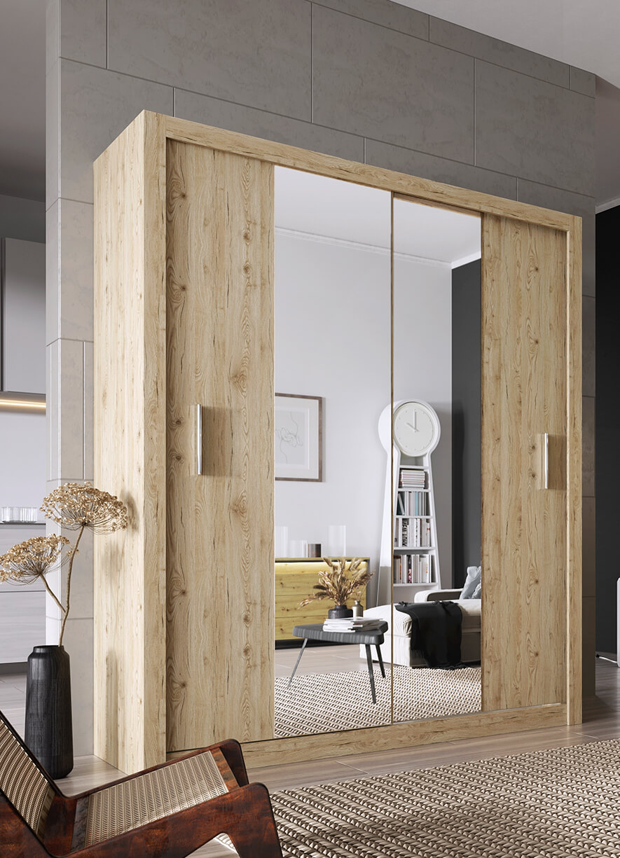 Μια πολύ ευρύχωρη, μοντέρνα ντουλάπα της σειράς IDEA, με δύο συρόμενες πόρτες που εξοικονομούν χώρο. Ο μοντέρνος, αλλά κλασσικός σχεδιασμός, την καθιστά ιδανική για κάθε υπνοδωμάτιο ενηλίκων ή εφηβικό, ή χόλ. Διαθέτει ένα μεγάλο καθρέφτη στο κέντρο των δύο προσόψεων που μεγενθύνει οπτικά τον χώρο και την κάνει ιδιαίτερα πρακτική. Διατίθεται σε 3 χρώματα (λευκό, γκρί, san remo). Στο εσωτερικό της υπάρχει μία ράβδος για κρεμάστρες και μια ραφιέρα με μεγαλα, ευρύχωρα ράφια. Μπορεί επίσης να τοποθετηθεί ειδικός φωτισμος LED-2S για εξοικονόμηση ενέργειας.