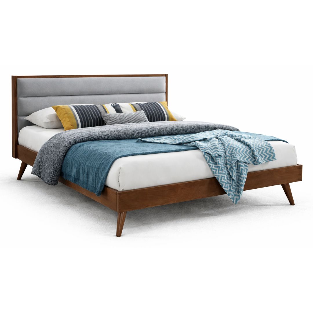 Εντυπωσιακό διπλό κρεβάτι που συνδυάζει το ξύλο και το ύφασμα.
