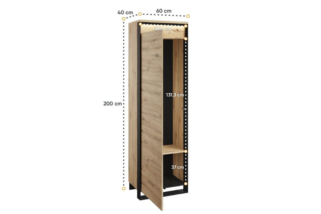 Διαστάσεις: 60 εκ (πλάτος) × 40 εκ (βάθος) × 200 εκ (ύψος) — συμπαγής αλλά λειτουργική.