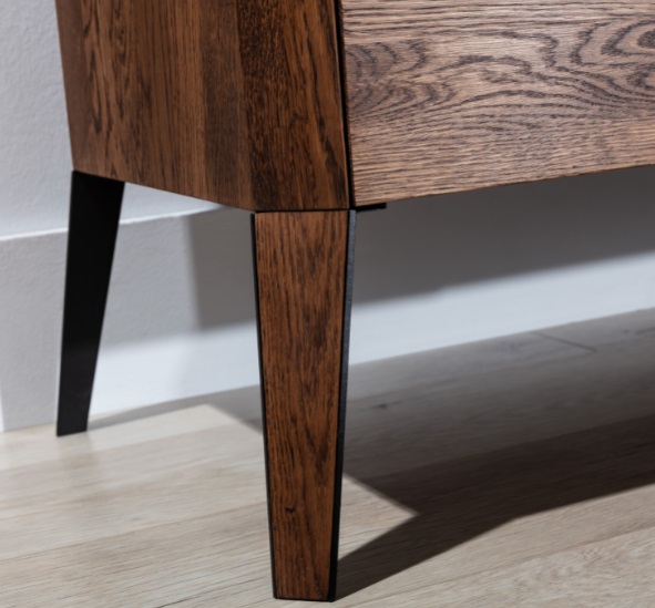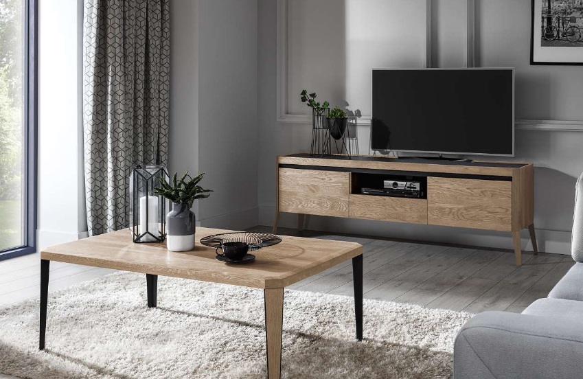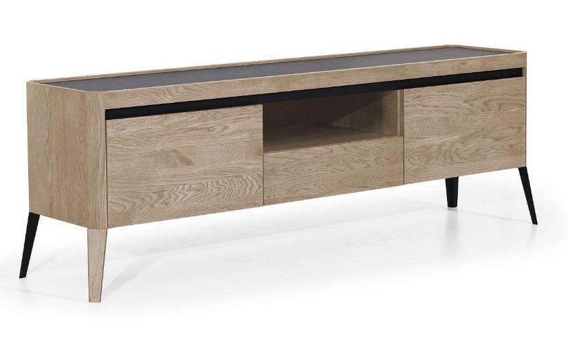 Το έπιπλο τηλεόρασης είναι φτιαγμένο από φυσική βελανιδιά , βερνικωμένο.