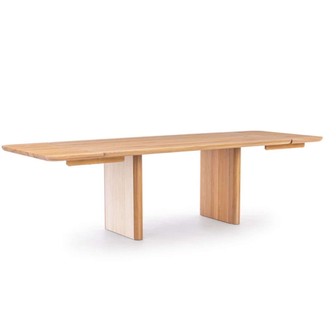 Το τραπέζι Rain είναι ένα μοναδικό κομμάτι που συνδυάζει τη φυσική ομορφιά του ξύλου με μια σύγχρονη πινελιά σε μορφή νευρώσεων (fluted detailing). Η επιφάνεια από μασίφ δρύ συνδυάζεται με πόδι που διαθέτει χαρακτηριστική ραβδωτή υφή – ή, εναλλακτικά, με πόδι κατασκευασμένο από νευρώδη ή λεία συνθετική πέτρα (sintered stone). Το αποτέλεσμα είναι ένα τραπέζι με ξεχωριστό χαρακτήρα, όπου η αισθητική συναντά τη λειτουργικότητα. Αποτελεί ιδανική επιλογή για όσους εκτιμούν τη διακριτική κομψότητα και την ανθεκτικότητα των φυσικών υλικών.