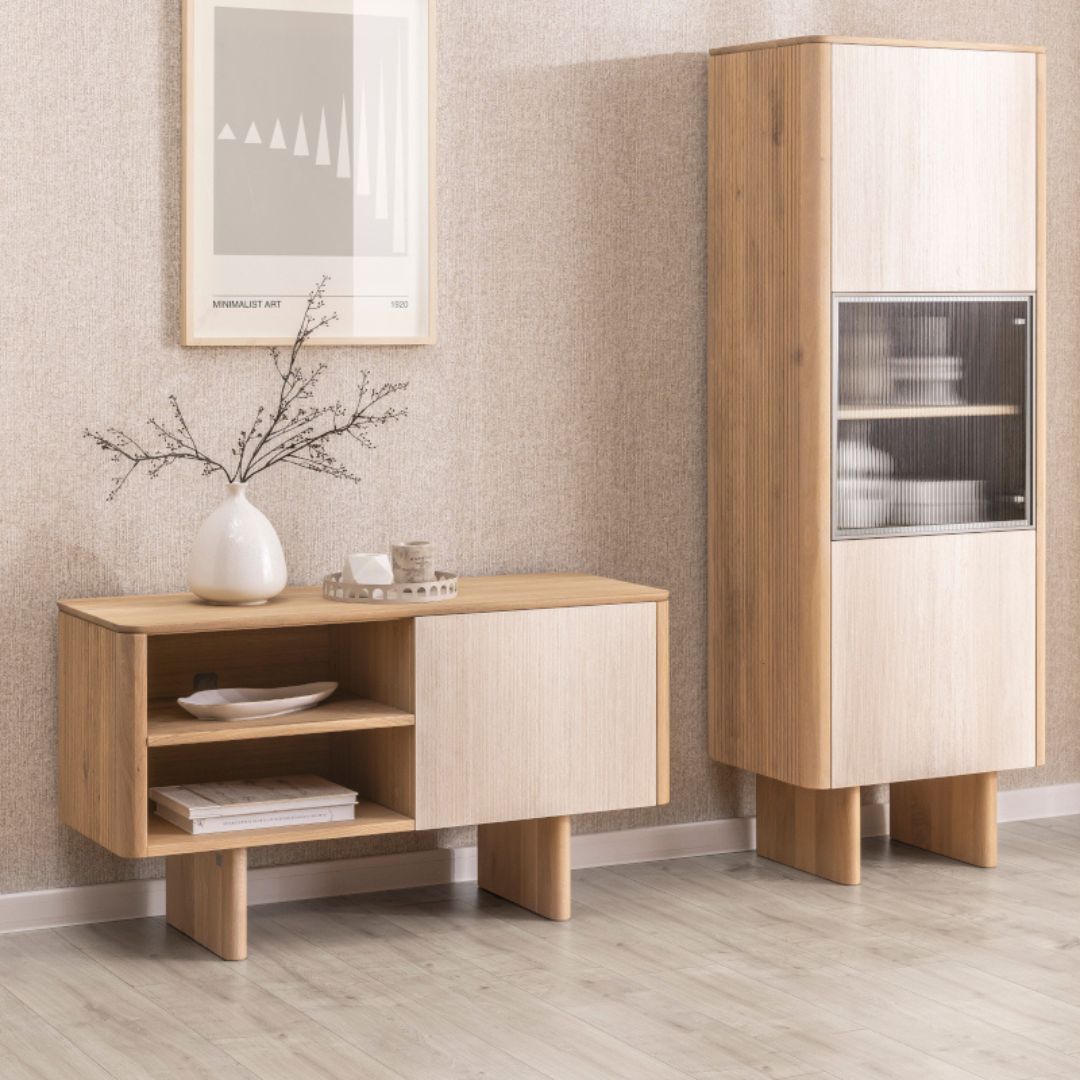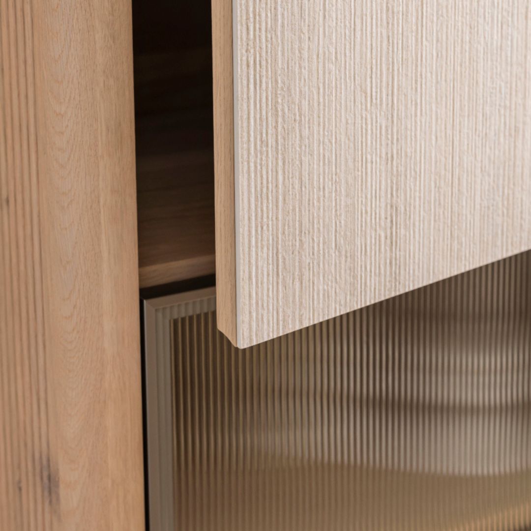 Η βιτρίνα Rain είναι ένα κομψό έπιπλο κατασκευασμένο από μασίφ ξύλο δρυός, που ξεχωρίζει για τον σύγχρονο σχεδιασμό και την άψογη ποιότητα κατασκευής του. Η χαρακτηριστική αυλακωτή διακόσμηση στα πλαϊνά προσδίδει μια μοναδική αισθητική, συνδυάζοντας κλασικά στοιχεία με μοντέρνο ύφος.