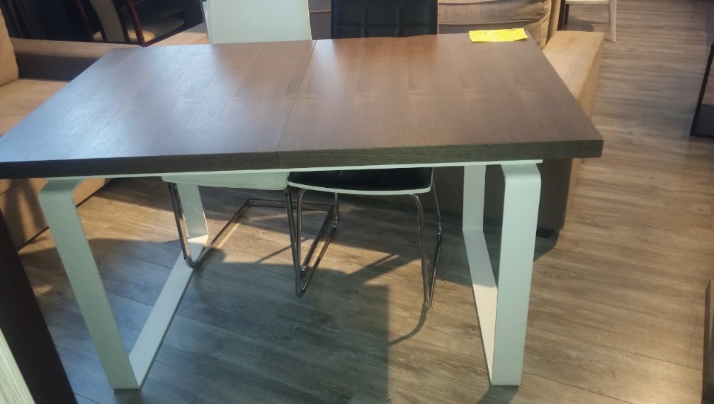 Τραπέζι ανοιγόμενο κατασκευασμένο από φυσικό καπλαμά με μεταλλικά ποδαράκια.