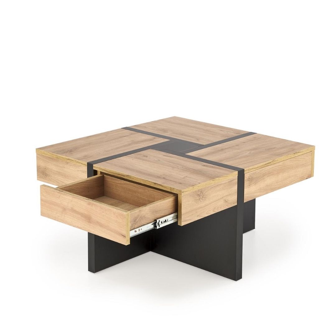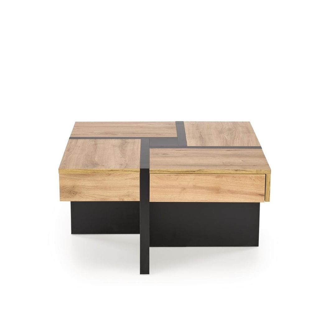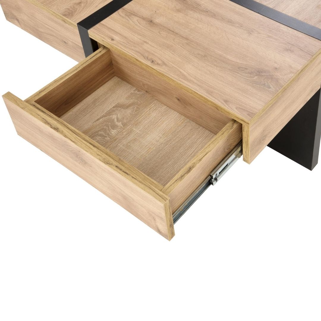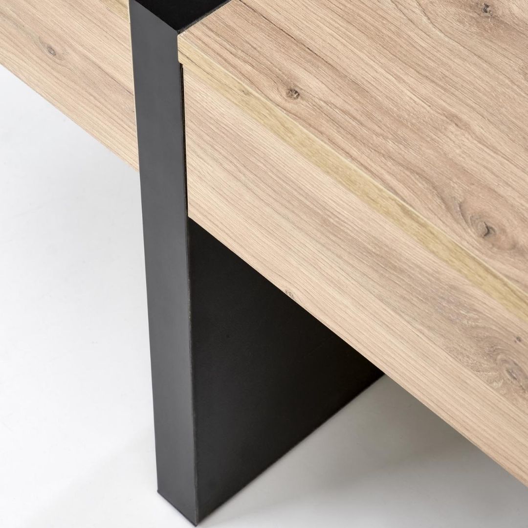 Το τραπεζάκι σαλονιού Sevilla συνδυάζει τη φυσική όψη του craft oak με τον σύγχρονο χαρακτήρα του μαύρου ματ, δημιουργώντας ένα κομψό και ισορροπημένο αποτέλεσμα. Κατασκευασμένο από πλαστικοποιημένη μοριοσανίδα υψηλής ποιότητας, προσφέρει αντοχή και πρακτικότητα για καθημερινή χρήση.