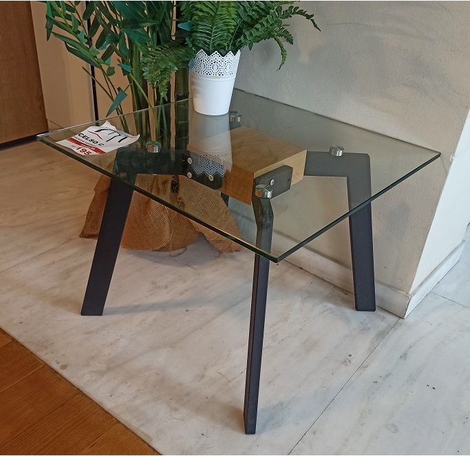 Τραπεζάκι σαλονιού Celso C με γυάλινη επιφάνεια και μεταλλικά πόδια .