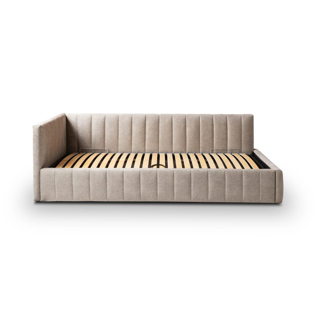 Διαθέτει ενσωματωμένο μεγάλο χώρο αποθήκευσης κάτω από το στρώμα με εύκολο άνοιγμα χάρη σε αυτόματο μηχανισμό, προσφέροντας άνετη αποθήκευση κλινοσκεπασμάτων και προσωπικών αντικειμένων.