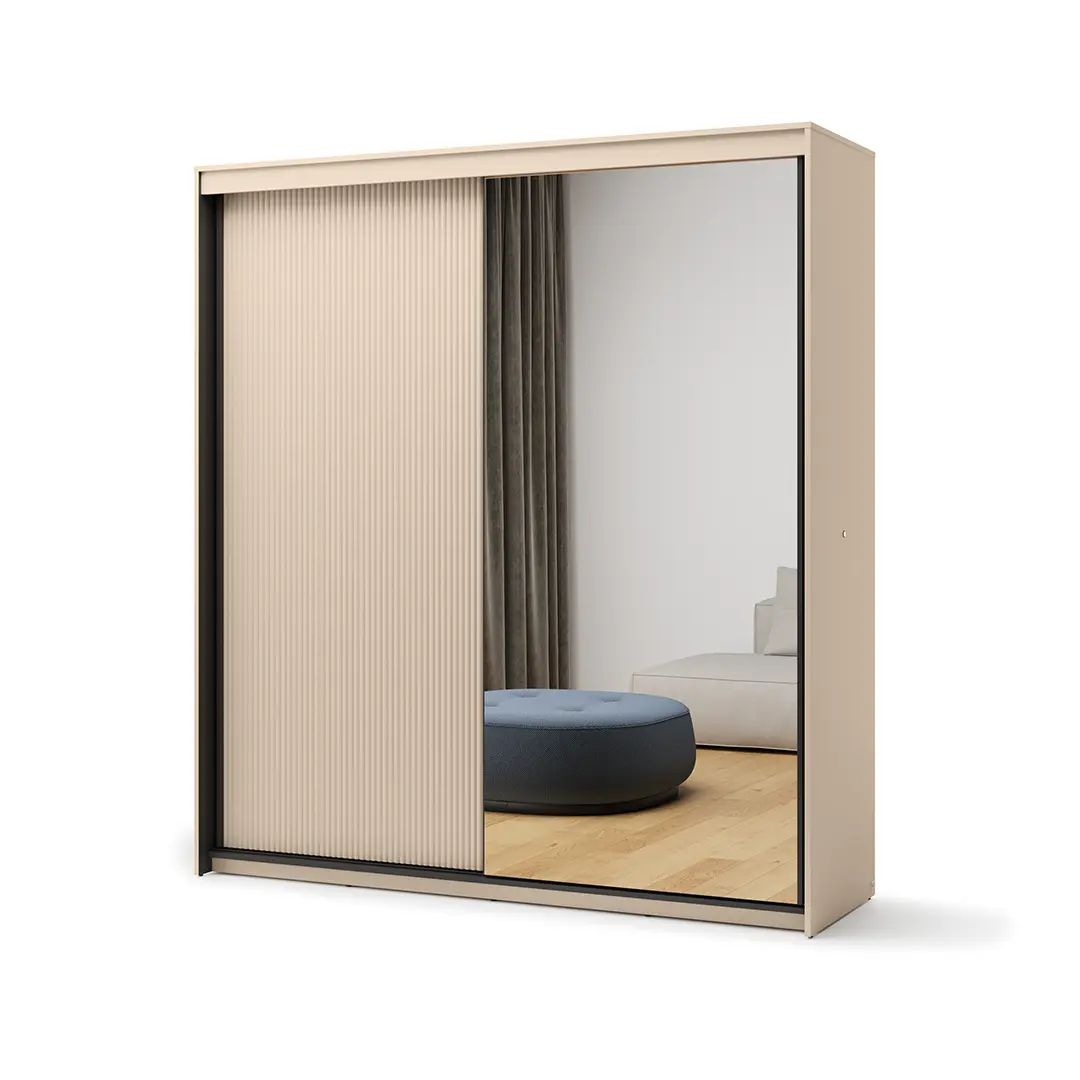 Η ντουλάπα Τrend TS-01 συνδυάζει κομψότητα, χωρητικότητα και λειτουργικότητα. Με ριχλέ πρόσοψη και ενσωματωμένο καθρέφτη, προσφέρει μοναδικό στυλ στο υπνοδωμάτιο, ενώ οι συρόμενες πόρτες εξοικονομούν χώρο. Διαθέτει έξυπνη εσωτερική διάταξη με ευρύχωρα ράφια και μεταλλική βέργα για ρούχα, ιδανική για καθημερινή χρήση.