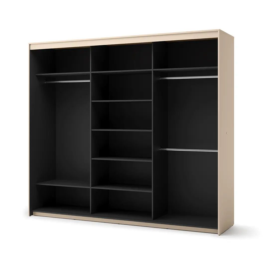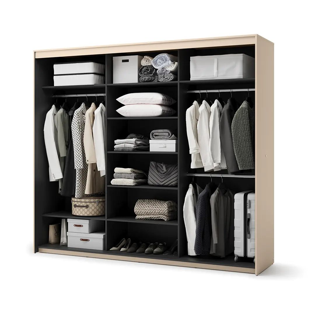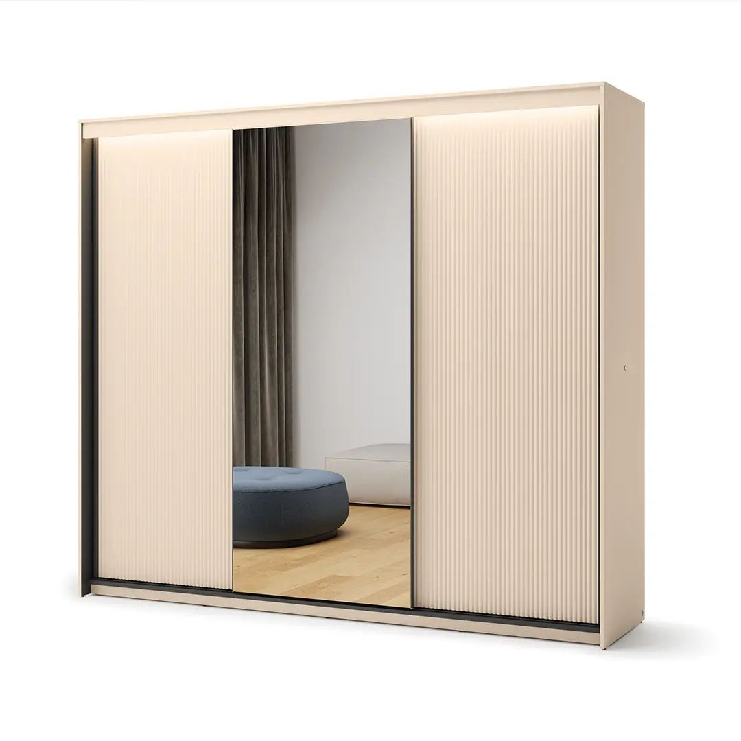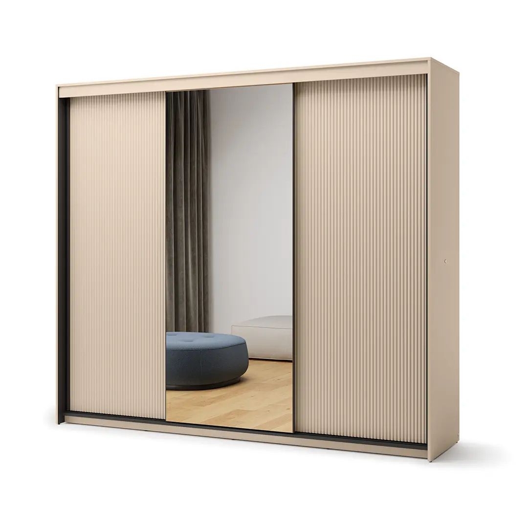 Η μεγάλη ντουλάπα tTrend TS-02 συνδυάζει άψογα λειτουργικότητα και αισθητική. Με πλάτος 250 cm, αποτελεί ιδανική επιλογή για όσους επιθυμούν ευρύχωρη αποθήκευση χωρίς να θυσιάζουν το στυλ. Οι ριφλέ προσόψεις και ο ενσωματωμένος καθρέφτης προσδίδουν μοντέρνο χαρακτήρα, ενώ οι συρόμενες πόρτες εξοικονομούν χώρο, καθιστώντας τη ντουλάπα ιδανική για κάθε υπνοδωμάτιο.