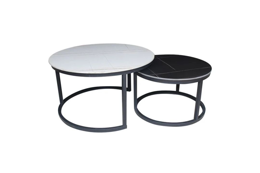 ΖΕΜ526,S Σετ-2 Τραπεζιών Σαλονιού Μεταλλικό Μαύρο/Sintered Stone Φ80cm+Φ60cm/White-Black Marble